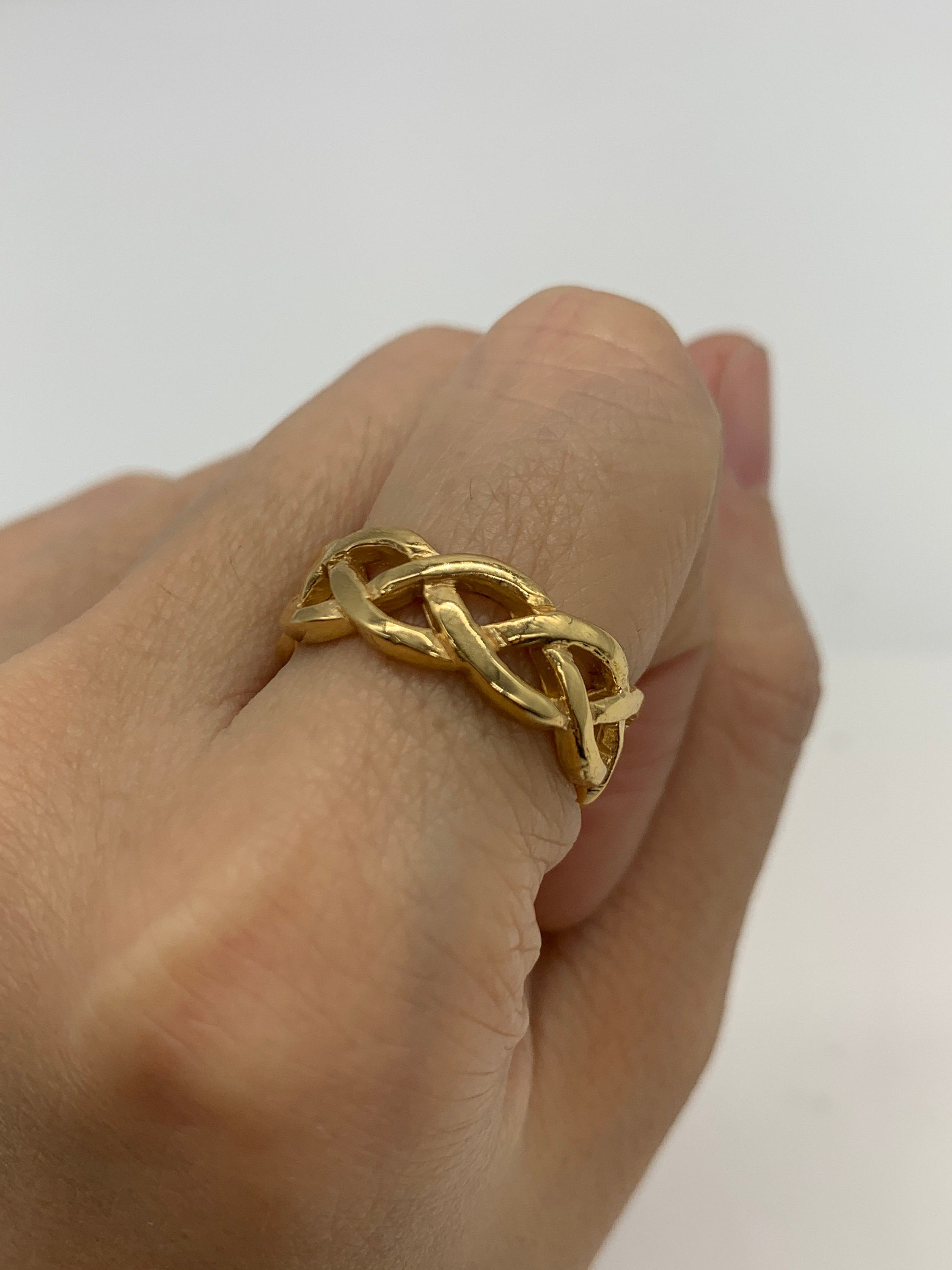 Gold Weaved Knot Band - Open Weave Celtic Ring, Vintage Pretzel Ring