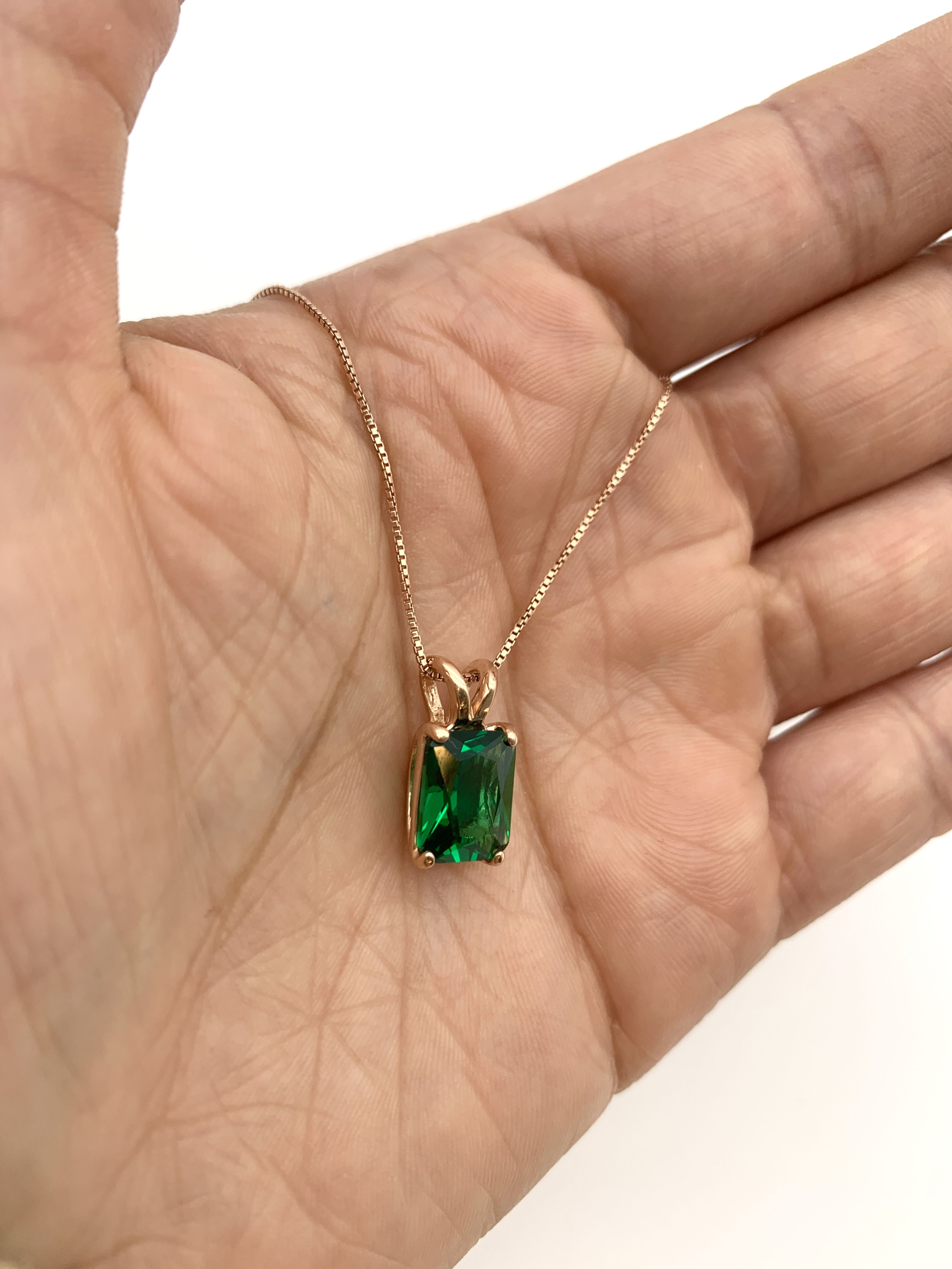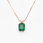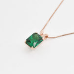 Rose Gold Green Necklace - Square Emerald Pendant - Green Radiant Necklace