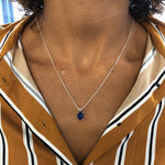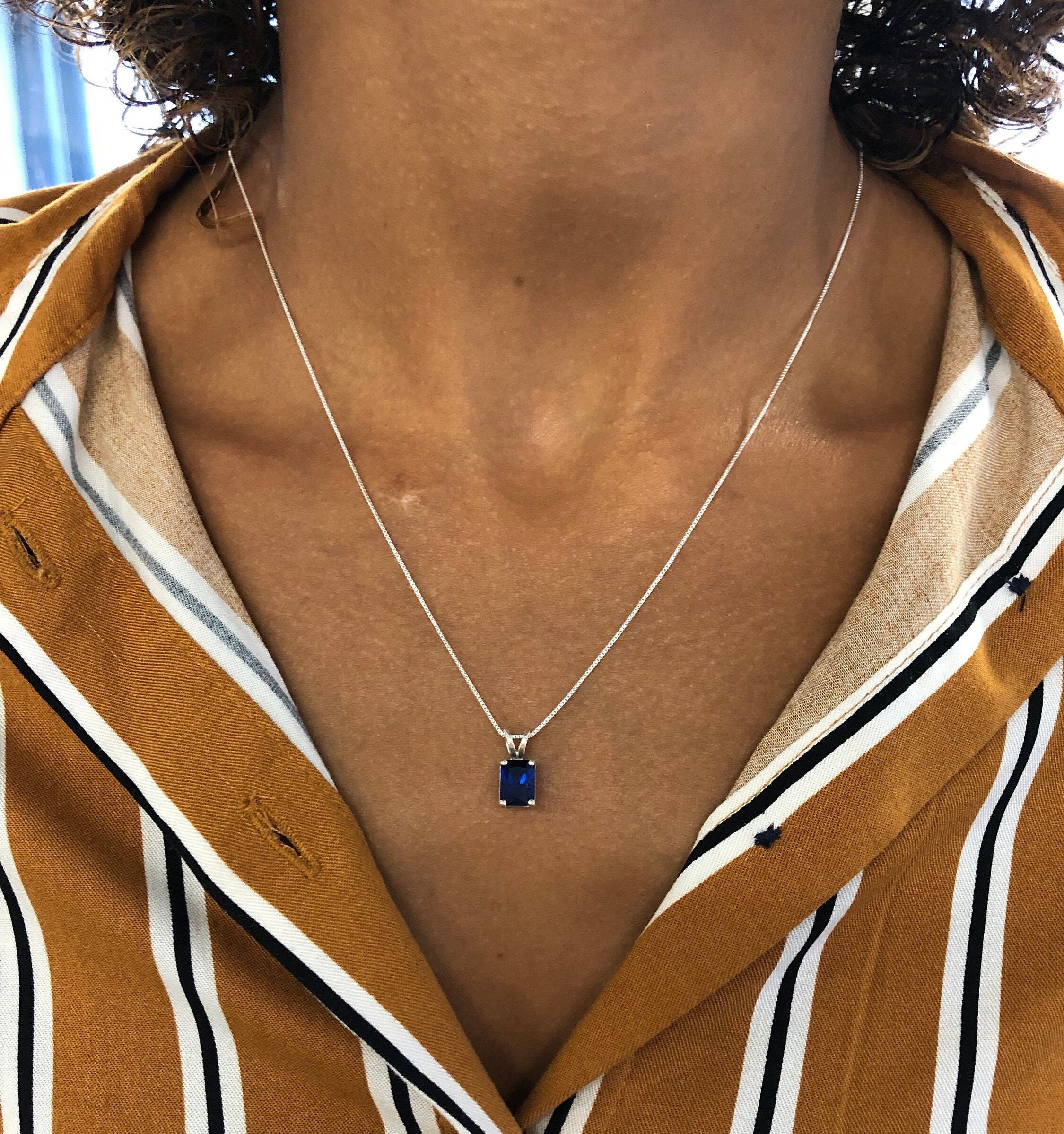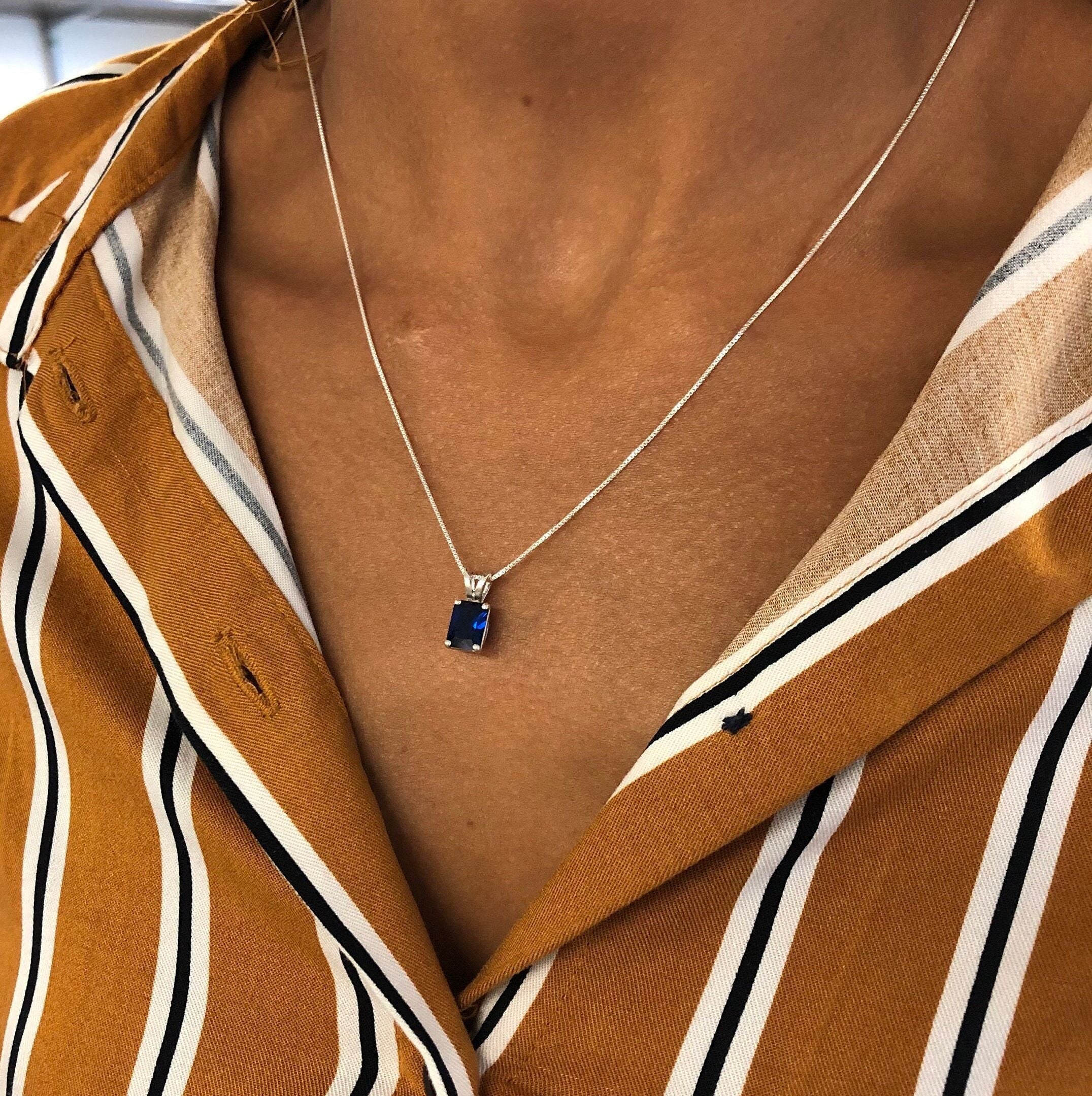 Square Sapphire Pendant - Classic Blue Necklace - Vintage Square Necklace