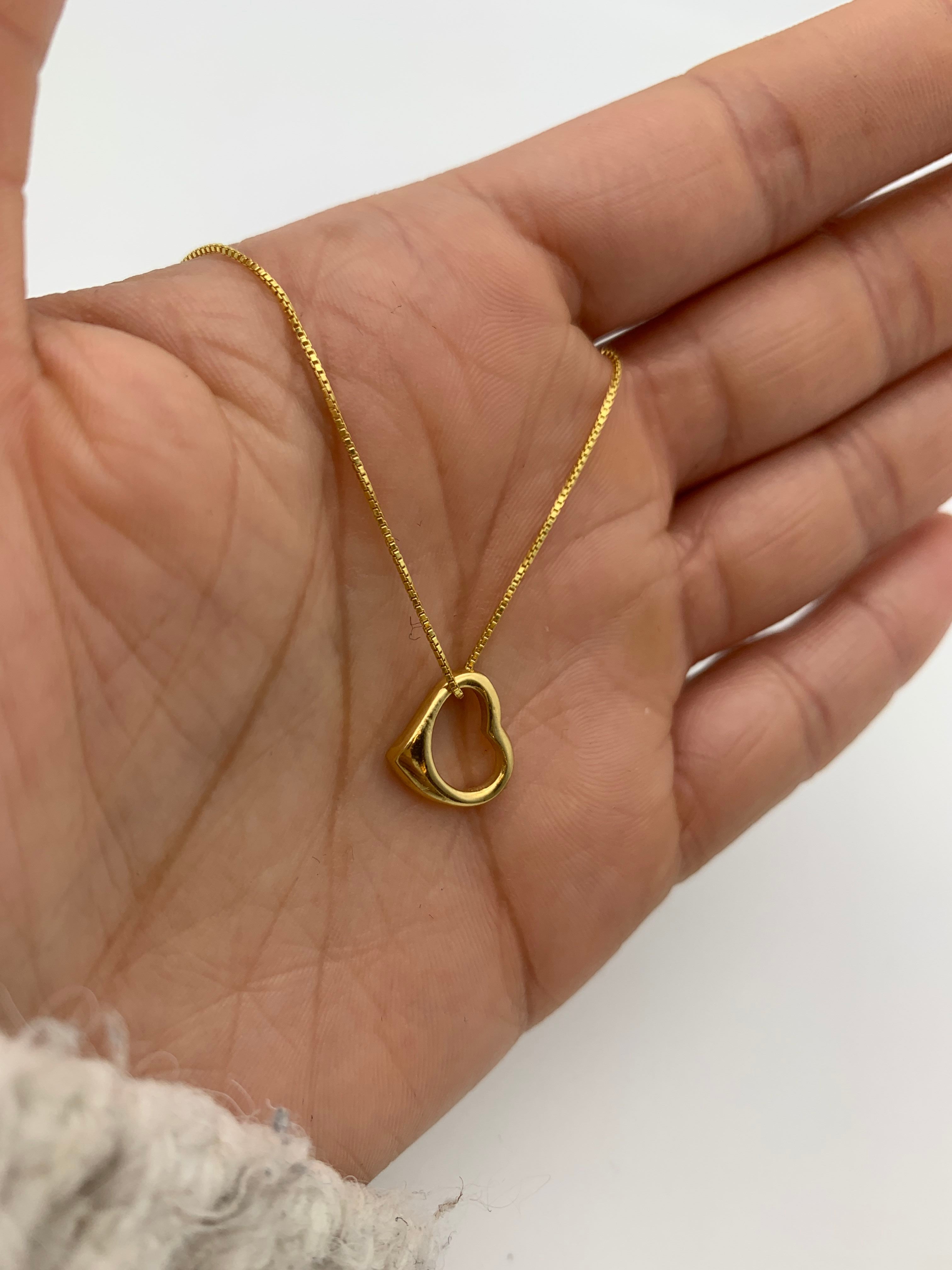 Gold Heart Necklace - Open Heart Pendant -Dainty Charm Necklace