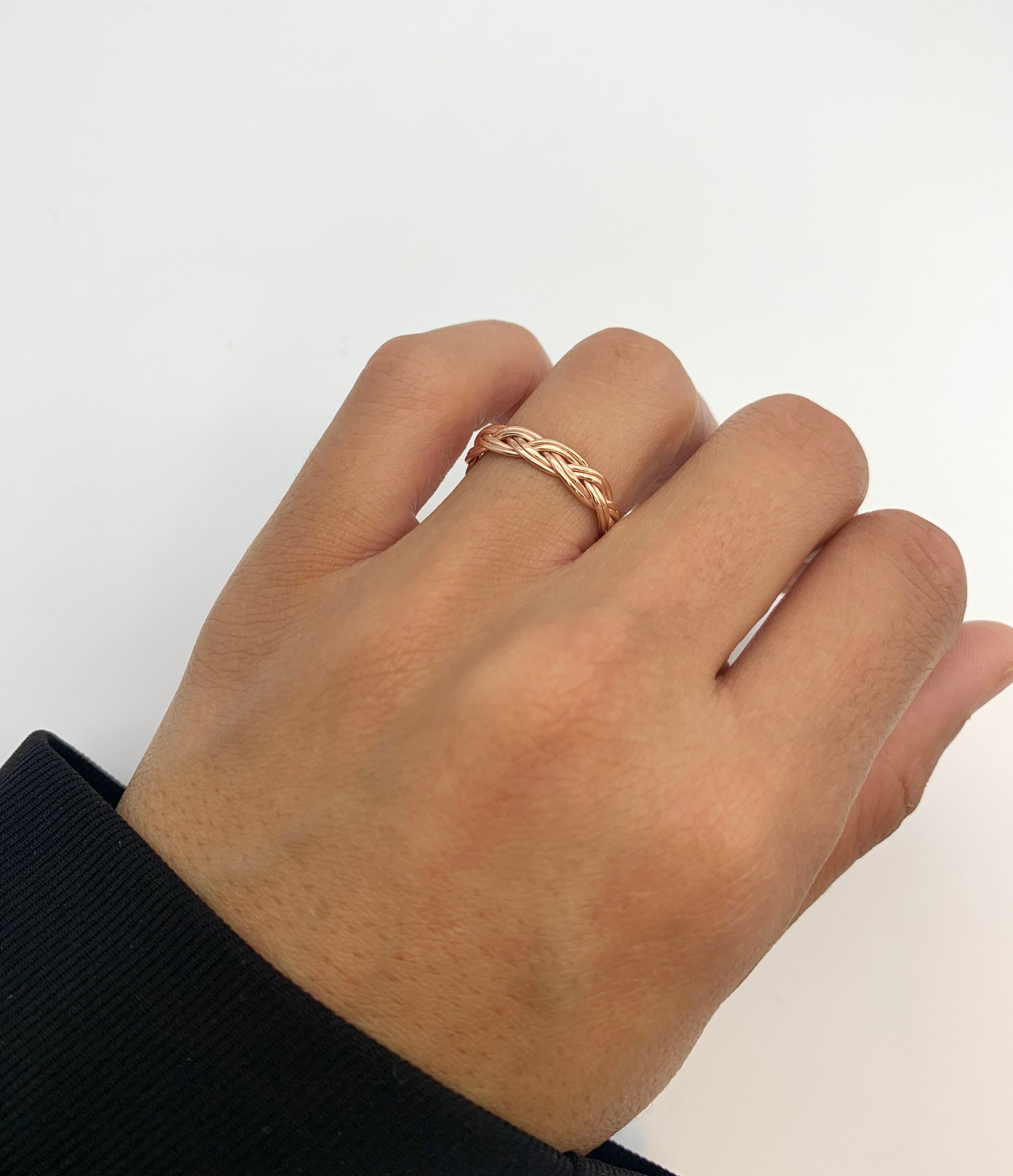 Pink Braided Ring - Rose Gold Band - Gold Intertwine Ring