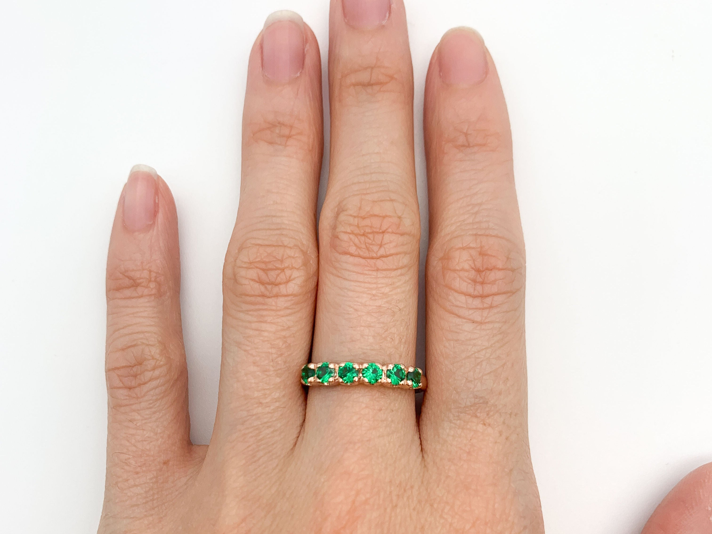Emerald Rose Gold Ring - Half Eternity Band - Stackable Emerald Ring