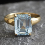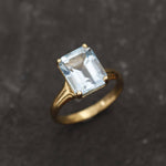 Gold Blue Topaz Ring set with Natural Blue Topaz in a perfect emerald cut, flawless clarity & stunning sky color at10x8mm (3 Cts) from Brazil.