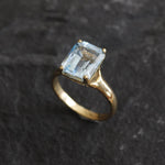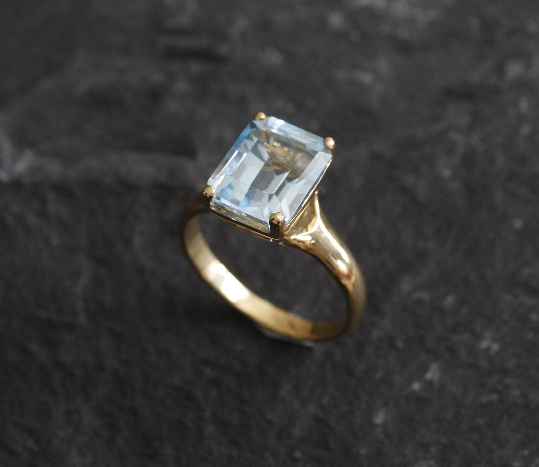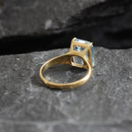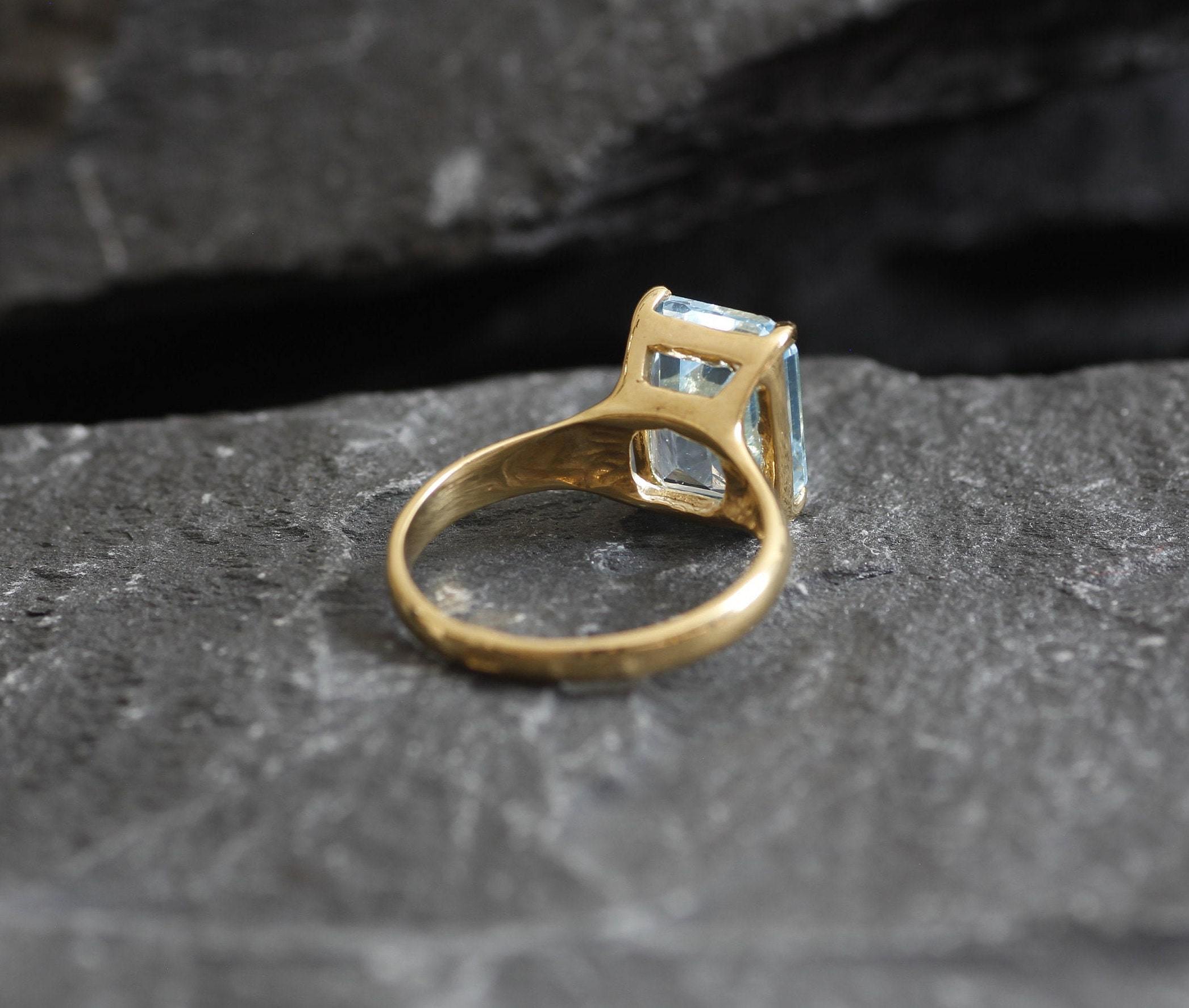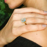 Gold Blue Topaz Ring - Blue Square Ring, Natural Blue Topaz