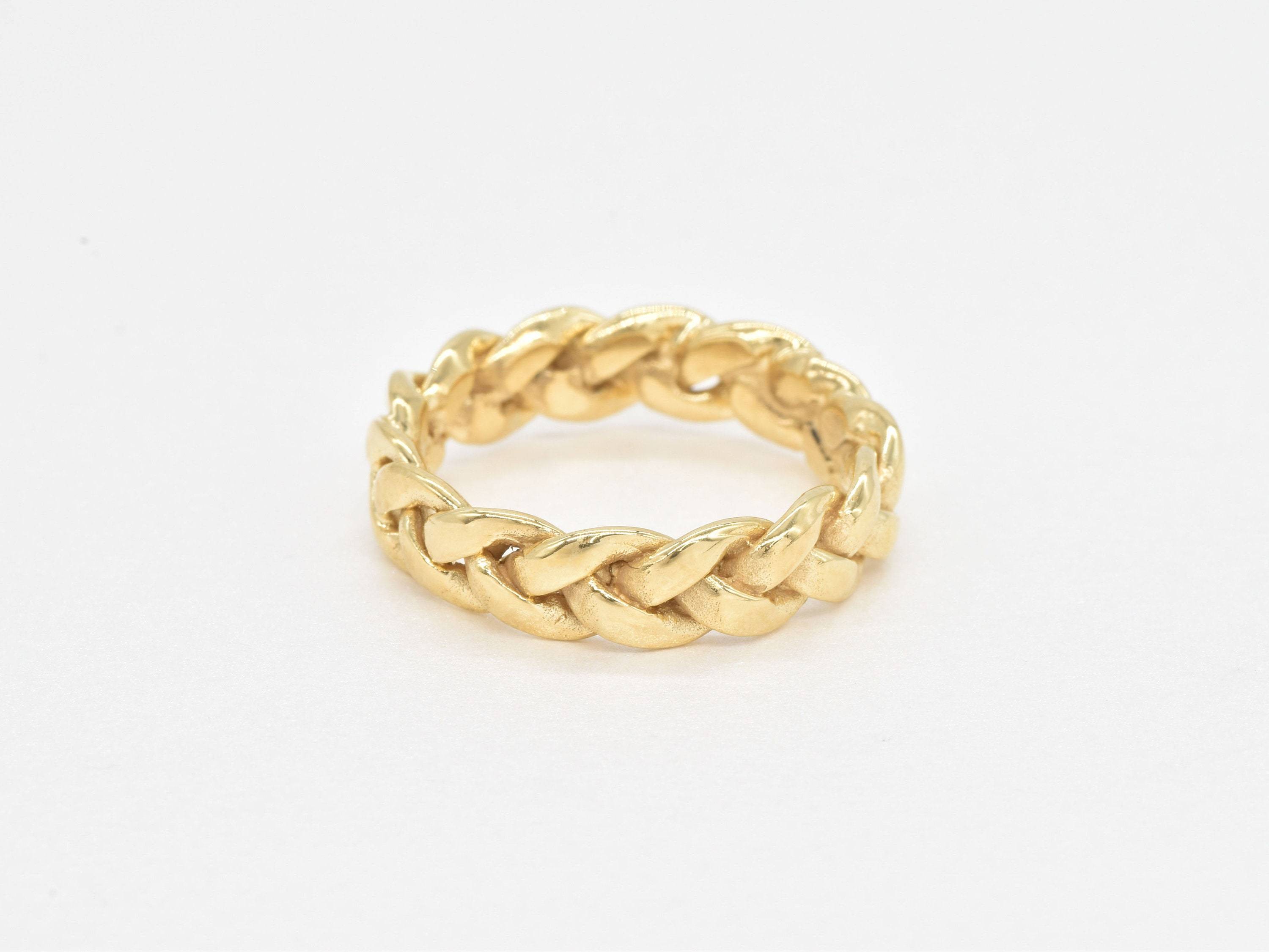 Gold Braided Band - Chain Link Ring, Unique Braided Wedding Band