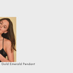 Gold Emerald Baguette Pendant, a modern vertical-style necklace crafted in 18K gold vermeil material, in rich green hue Emerald with stunning clarity, at 6x4mm. The baguette shape of the Emerald adds sparkle and beauty, making it a perfect necklace for date nights, and special occasions.