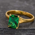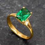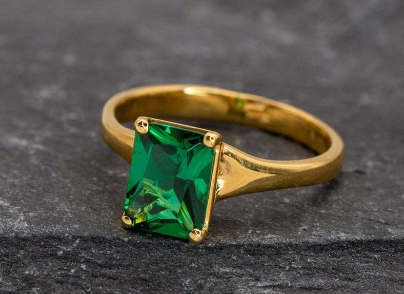 Gold Emerald Ring - Green Square Ring - Vintage Square Ring