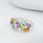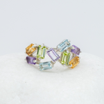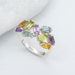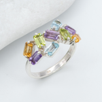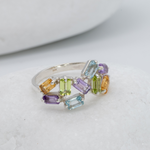 Multi Stone Baguette Ring, Colorful Birthstone Ring, Rainbow Birthstone Ring
