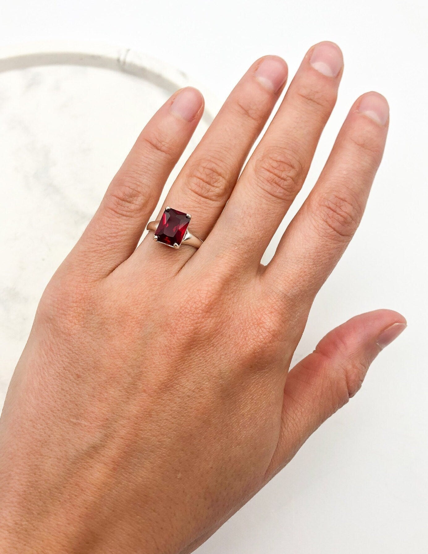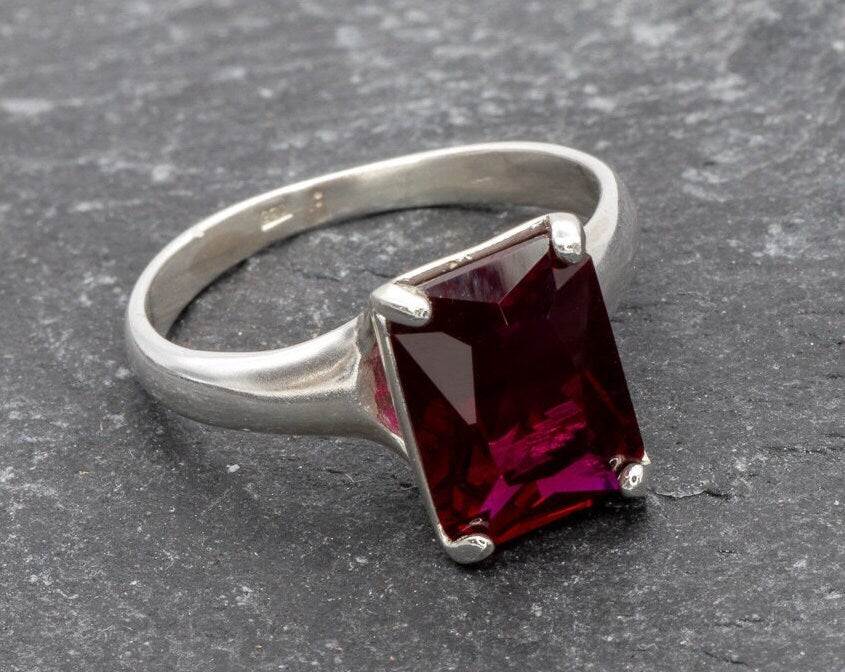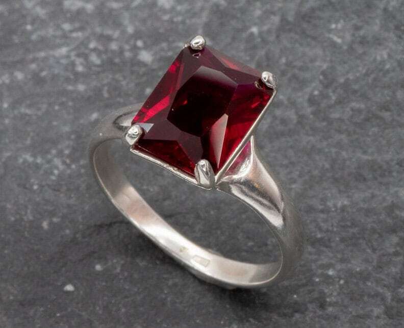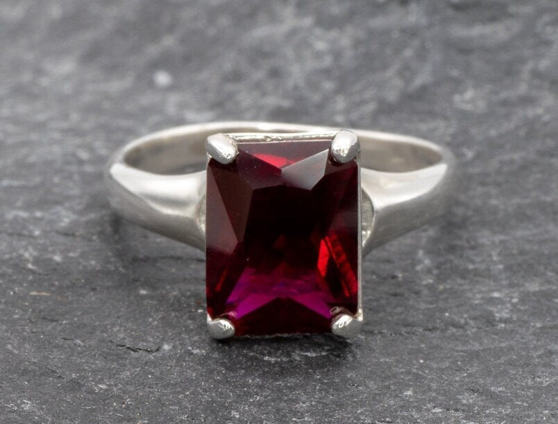 Red Ruby Ring - Silver Ruby Ring - Red Engagement Ring